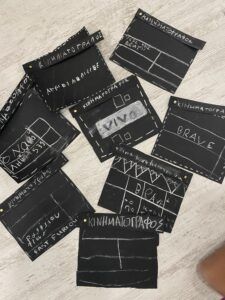 Κατασκευάσαμε κλακέτες, κατά την διαδικασία κατασκευής τους όμως, μάθαμε πως οι πληροφορίες που αναγράφονται πάνω τους είναι πολύ σημαντικές, καθώς παίζουν μείζονα ρόλο για τη σωστή ροή της ταινίας. Αναλυτικότερα, οι πληροφορίες που αναγράφονται πάνω στη κλακέτα είναι ο αριθμός της σκηνής, του πλάνου και της λήψης.