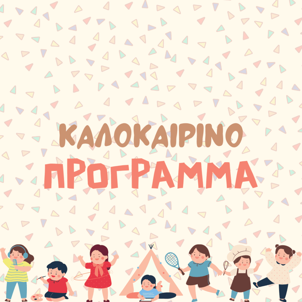 ΚΑΛΟΚΑΙΡΙΝΟ ΠΡΟΓΡΑΜΜΑ / Πρόγραμμα / Από ΚΔΑΠ Σας παρουσιάζουμε το νέο, ανανεωμένο και φρέσκο καλοκαιρινό μας πρόγραμμα! Γεμάτο παιχνιδιάρικη διάθεση, όρεξη για δημιουργία και τρελό κέφι! Περιμένουμε όλα μας τα παιδάκια από 16/06 για να το ανακαλύψουμε παρέα, καθημερινά 08:00-16:00!