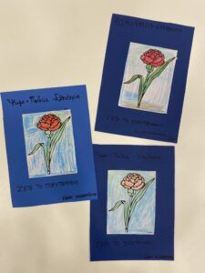 Χρωματίσαμε γαρύφαλλα, εξηγώντας στα παιδιά πως χάθηκαν πολλές ανθρώπινες ζωές στην μάχη για την δημοκρατία και την ελευθερία.